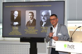 Die Abendveranstaltung starte mit Herrn Prof. Werner Klaffke, geschäftsführendes Vorstandsmitglied im Haus der Technik e.V., der einen Einblick in die Geschichte des Hauses und die Entwicklung als Weiterbildungsanbieter für Ingenieure und Fachkräfte technischer Berufe gab.