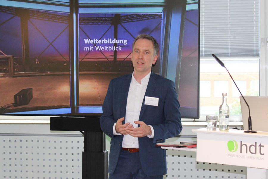 Am nächsten Morgen ging es zunächst um die Digitalisierung in der betrieblichen Weiterbildung. Prof. Klaffke stellte den neuen digitalen Campus des HDT vor.